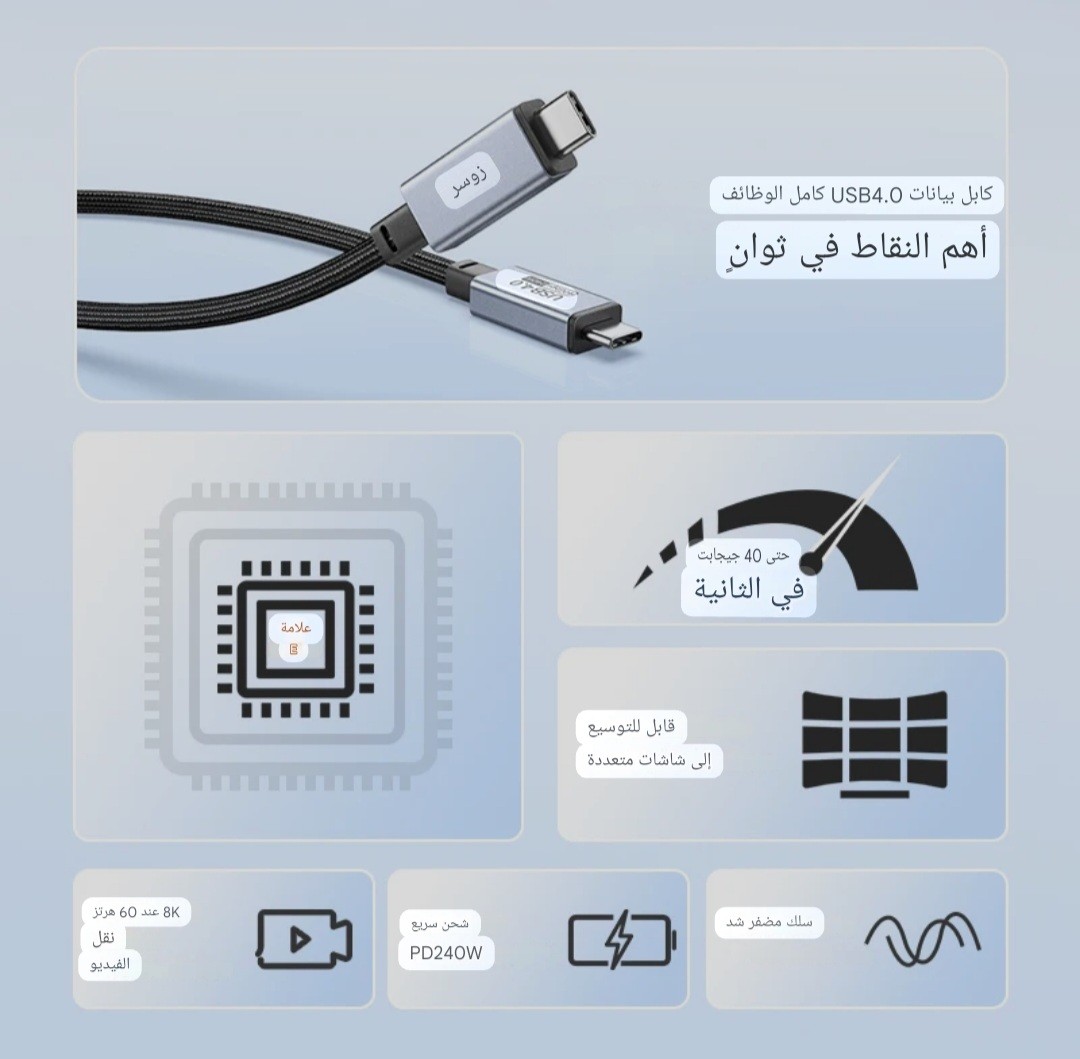 TYPE C USB4.0 cable 8k data 40GB Pawer 240w